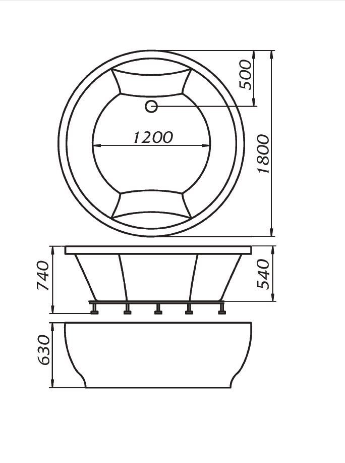 - Акриловая ванна Omega 1800x1800 без каркаса, панелей и слива-перелива.