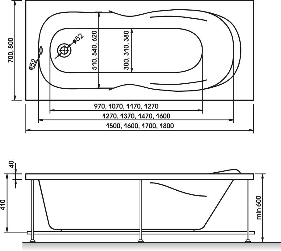 Ванна без каркаса, панелей и слива-перелива. Смотрите дополнительную комплектацию. Ванна доступна для заказа в гидромассажных опциях.