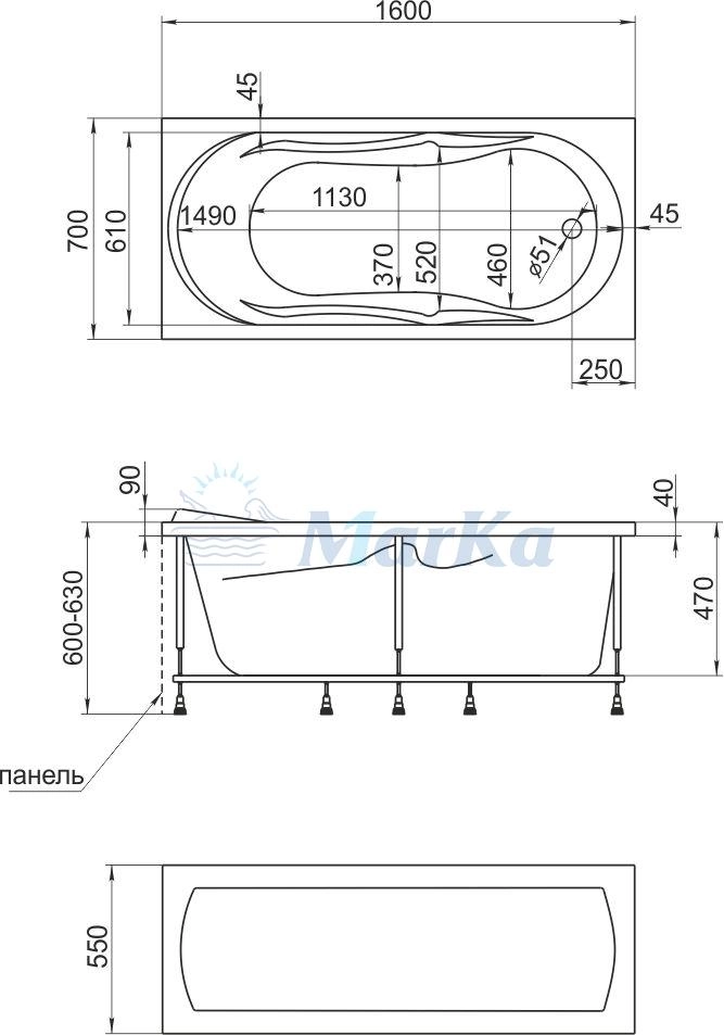 —Ванна 1Marka VITA 160x70 см без гидромассажа