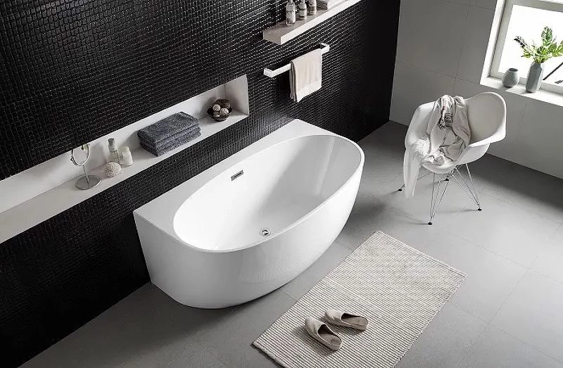 Ванна акриловая, свободностоящая, в комплекте с сифоном и металлической рамой. Новый продукт в бренде Azario – свободностоящие акриловые ванны, отличающиеся современным люксовым дизайном с тонкими стенками (бортики толщиной до 20 мм), при этом по прочности не уступающие любым другим ваннам. Производитель дает 3 года гарантии на то, что не изменится цвет акрила, и 5 лет гарантии на прочность структуры. В производстве ванн используется высококачественный китайский листовой акрил (по качеству не уступающий Lucite), изготовленный из первичного ПММА (оргстекла). Толщина исходного акрилового листа – 4 мм. Благодаря качественному материалу данные ванны устойчивы к появлению пятен, теплоизолированы (температура воды будет оставаться неизменной в течение более длительного времени). Вес одной такой ванны — около 50-70 кг, качественные материалы обеспечивают прочностные характеристики и достаточную толщину акрилового слоя для реставрации (в случае появления царапин и т.п.), высокую устойчивость и стабильность ванны за счет стальной рамы и ножек (рама используется цельнометаллическая, а не пустотелые профили, для еще большего усиления конструкции). Таким образом, конструкция каждой ванны усилена двумя цельностальными балками + 4 стальных регулируемых ножки для удобства регулировки ванны по уровню пола. Также каждая ванна уже укомплектована сифоном со сливом перелива, произведенных из латуни, покрытие – хром.