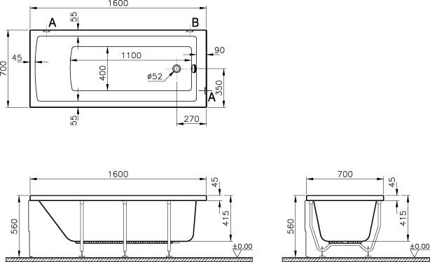 Vitra Прямоугольная акриловая ванна Neon 160х70 см. Фронтальная панель, боковая панель, слив-перелив, и ножки заказываются отдельно.