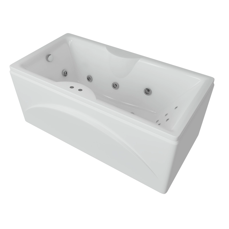 При изготовлении ванн используется 100% литиевой акриловый лист немецкого производства не имеющий запаха. При покупке ванн Компании «Акватек» вы всегда можете рассчитывать на 100% качество изделия и пол- ное сервисное обслуживание. Ванна с гидромассажем (4 боковых и 2 в ногах форсунок) на сварном алюминиевом каркасе в комплекте с сливом-переливом.
