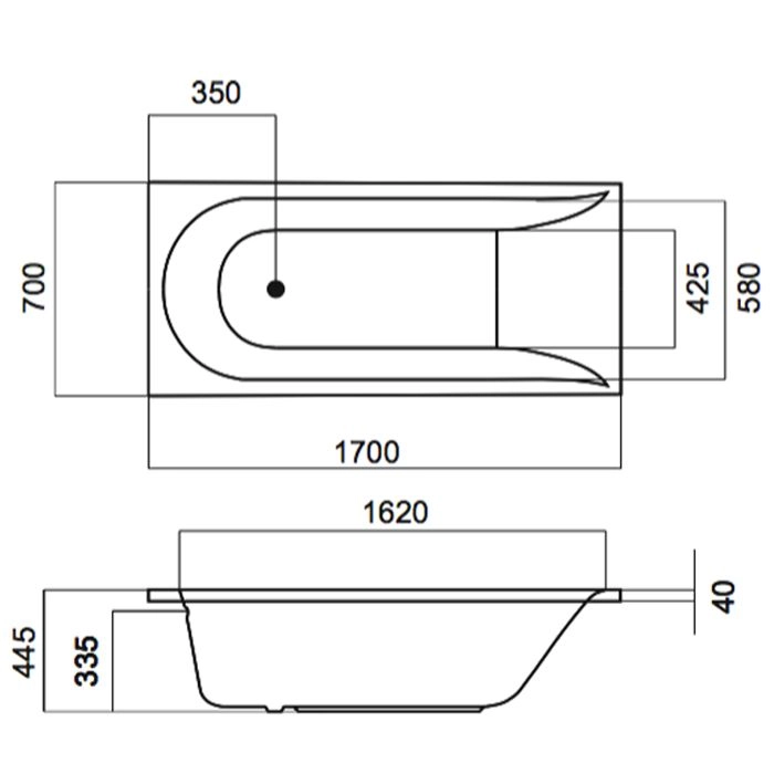 W72A-170-070W-A2 Ванна акриловая spirit 170x70, без слива/перелива
