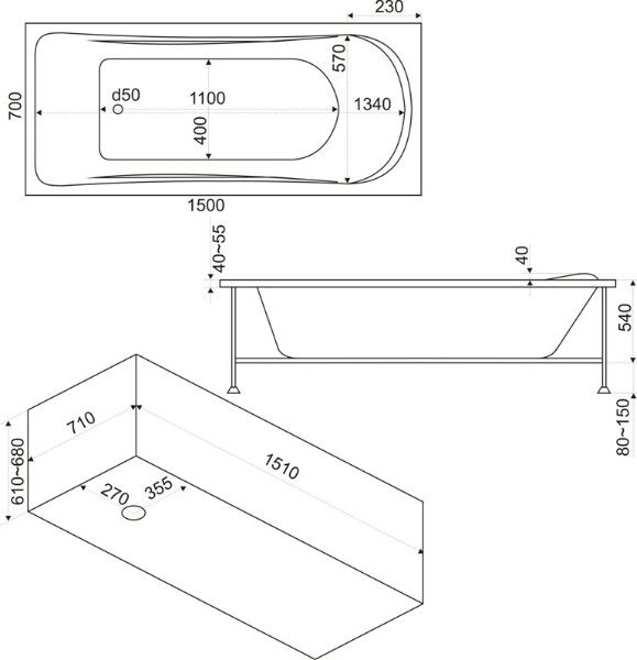 при покупке : 1.Крепеж стеновой для акриловых ванн(4шт) .