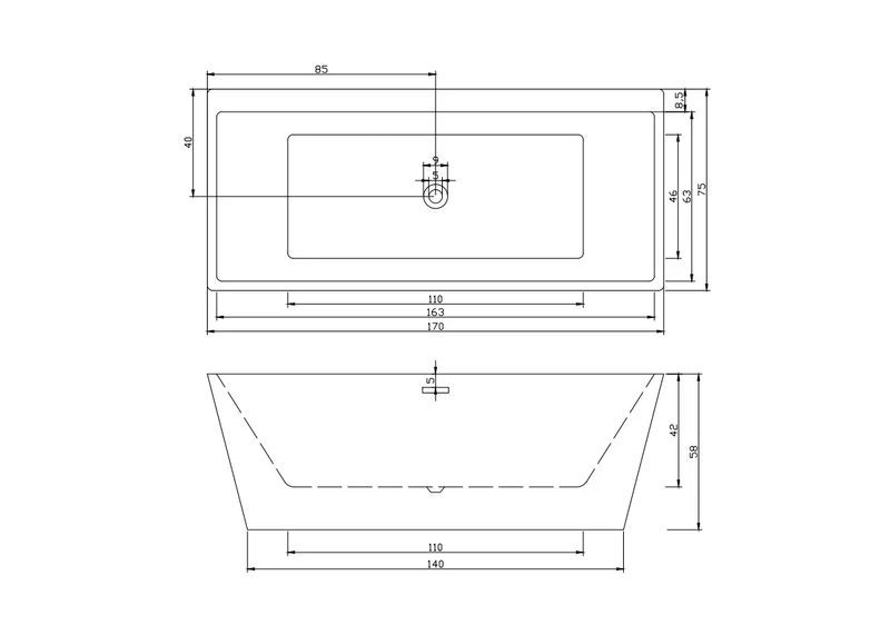 Ванна LUGANO акриловая отдельностоящая Cerutti SPA (170х750х580)