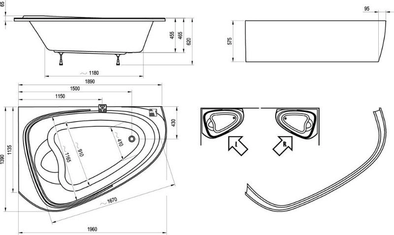 Размер: 196x113,5 - 139 cм. Позволяет наслаждаться принятием ванны вдвоем. Возможность установки гидромассажной системы. Смотрите дополнительную комплектацию: опоры для ванн продаются отдельно.