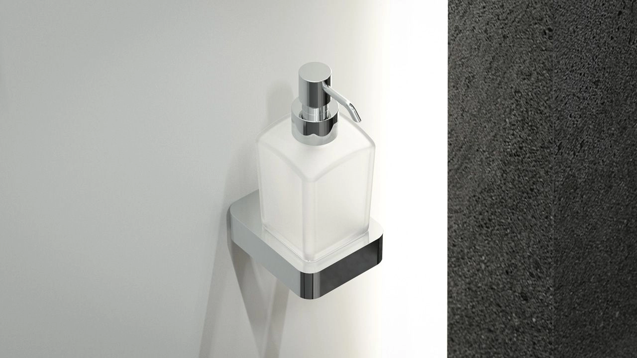 Держатель с дозатором жидкого мыла матовое стекло; ARTWELLE 8333 8333 имеет размер в мм: Ширина - 7,5, Высота - 10,4, Длина - 17, Вес нетто в кг: 0,603, Расположение: Настенное, Крепление: Саморез, Материал: латунь, стекло; Гарантия 10 лет.