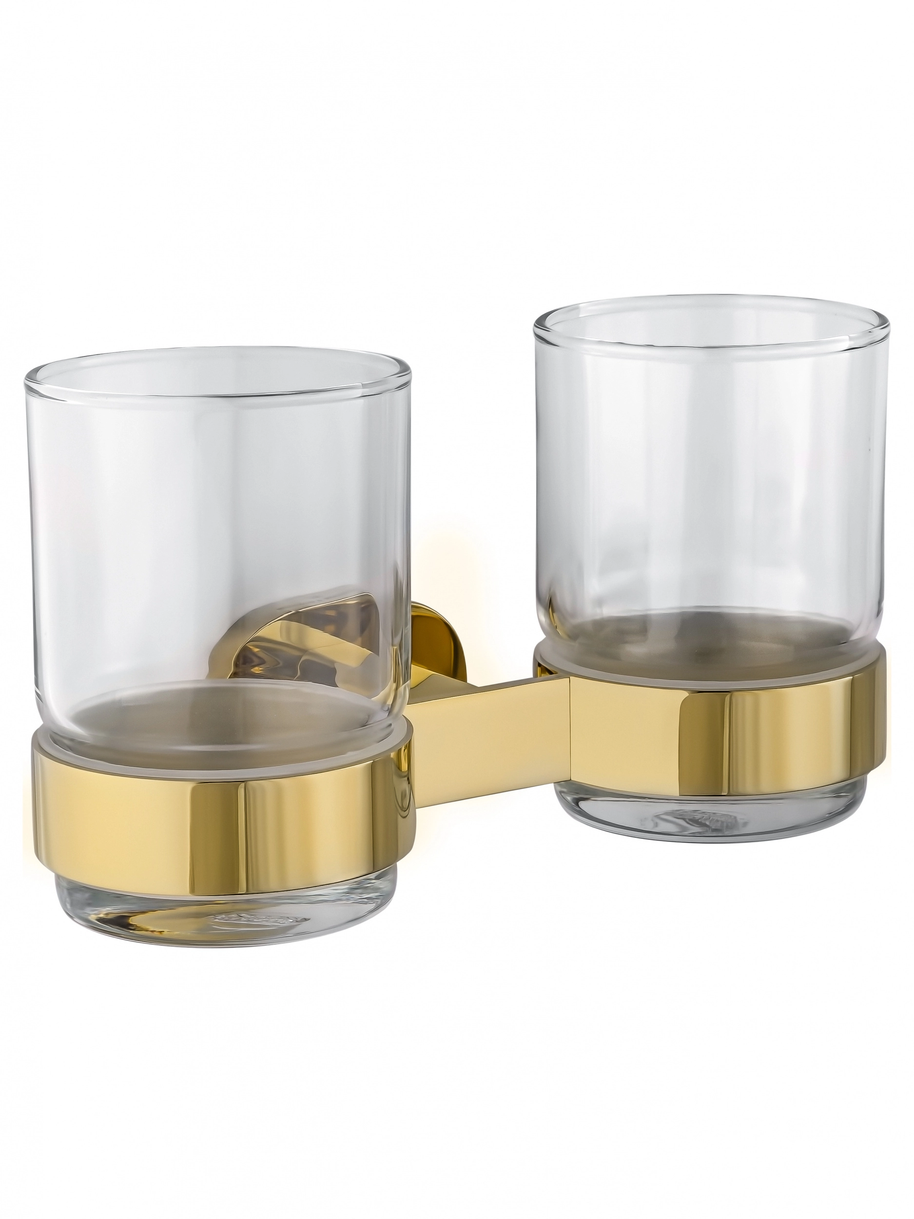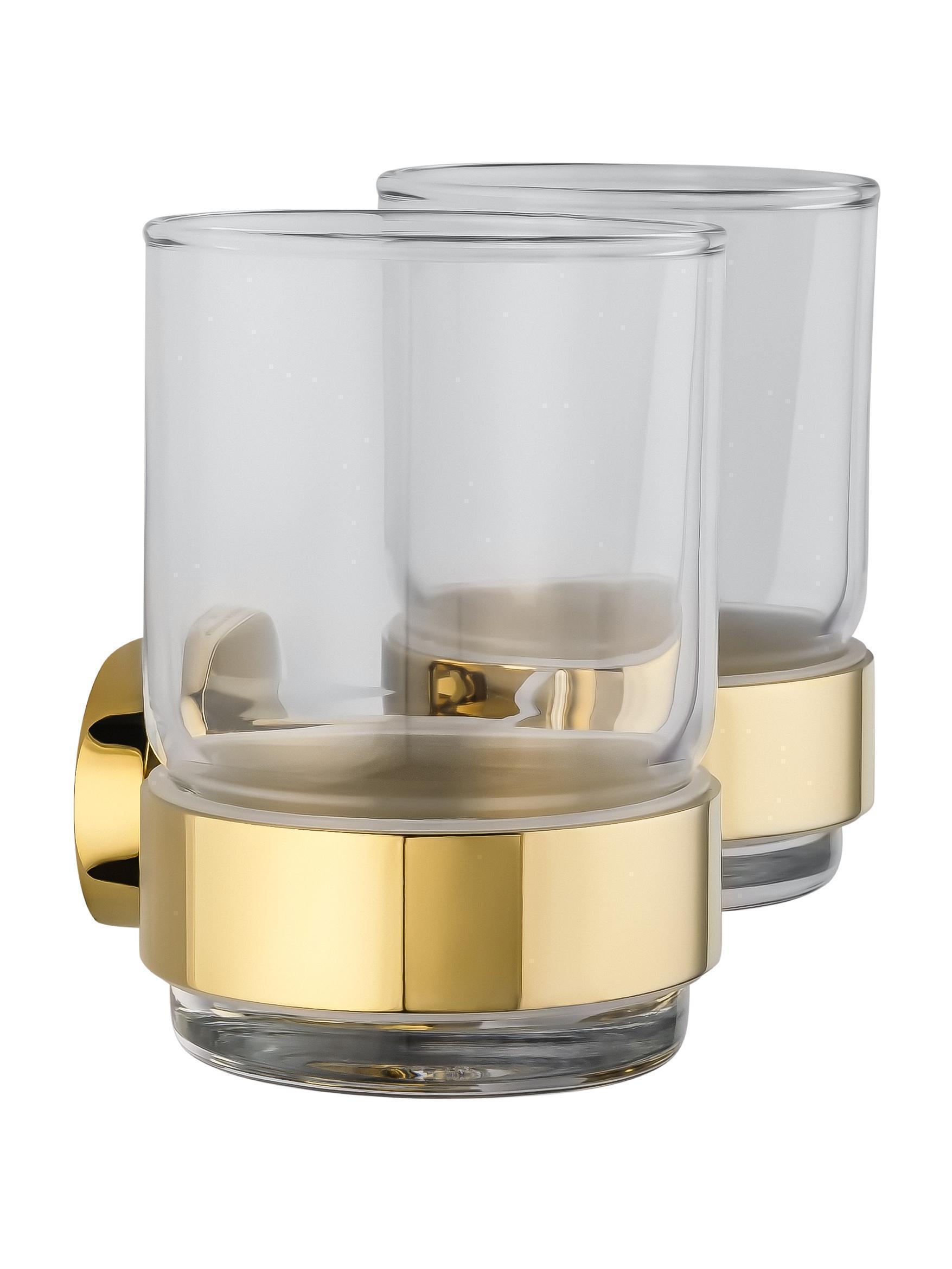 Два стакана для зубных щеток с держателем WONZON & WOGHAND FIRST, Глянцевое золото (WW-8428-LG)