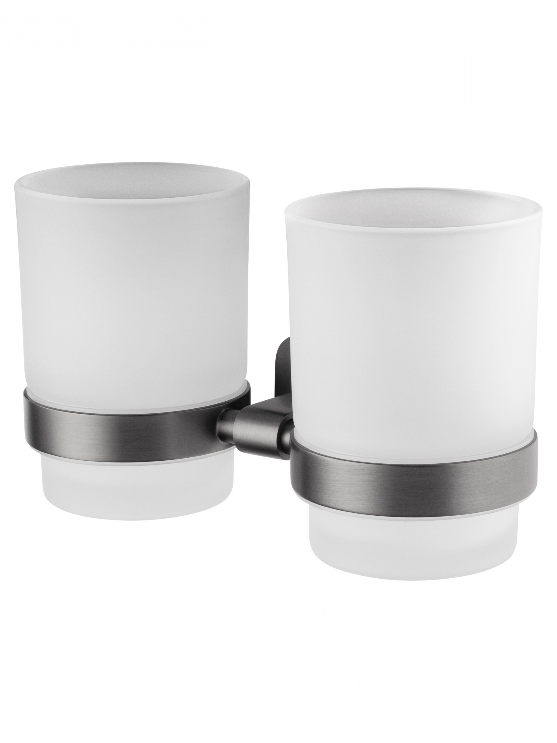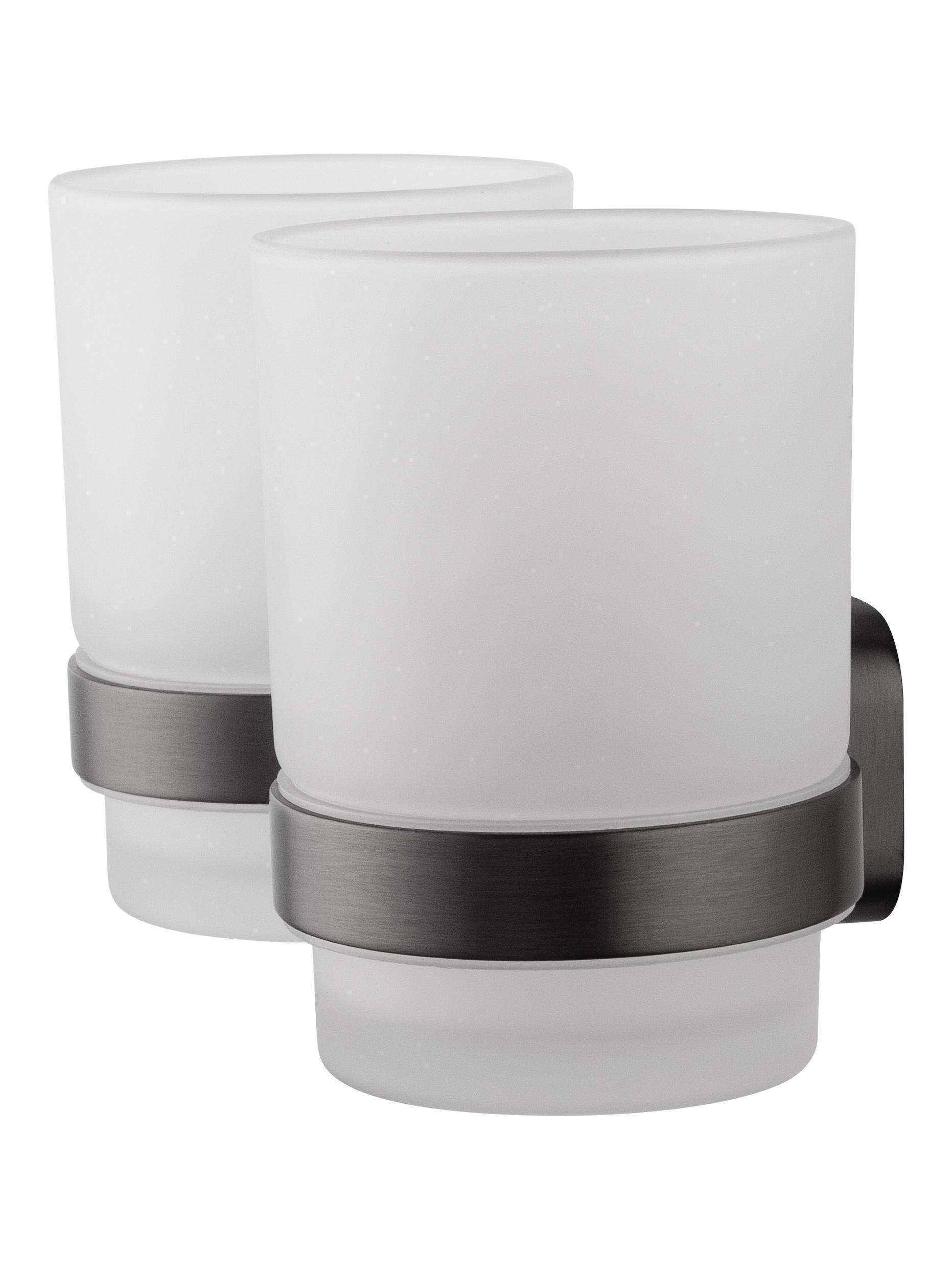 Два стакана для зубных щеток с держателем WONZON & WOGHAND GRAFFITY, Темный графит (WW-9328-GM)