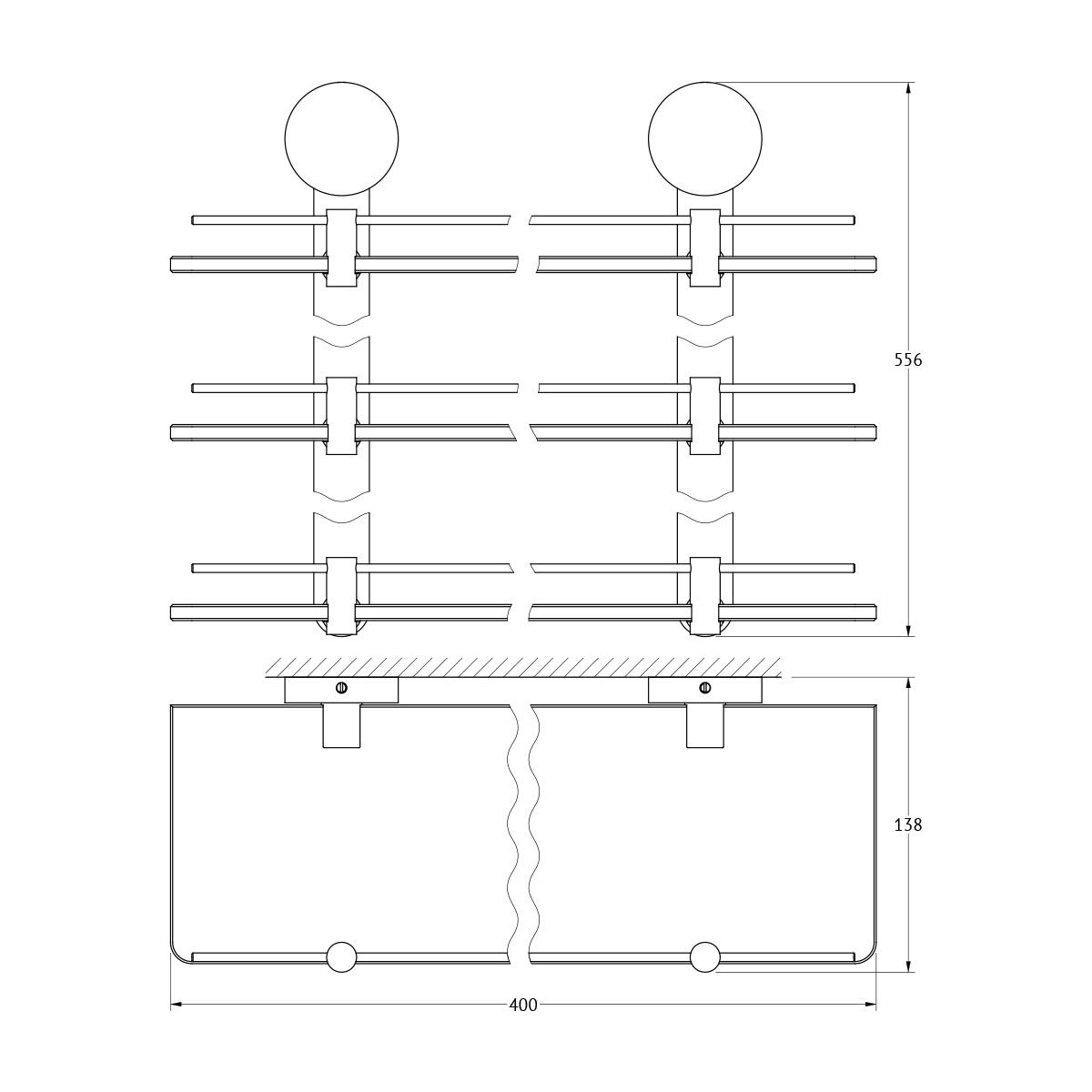 Полка 3-х ярусная 40 cm торговой марки ARTWELLE коллекции Harmonie, артикул: HAR 038 имеет размер в мм: Ширина - 400, Высота - 556, Длина - 138, Вес нетто в граммах: 3391, Расположение: Настенное, Крепление: Саморез, Материал: Латунь; Стекло.