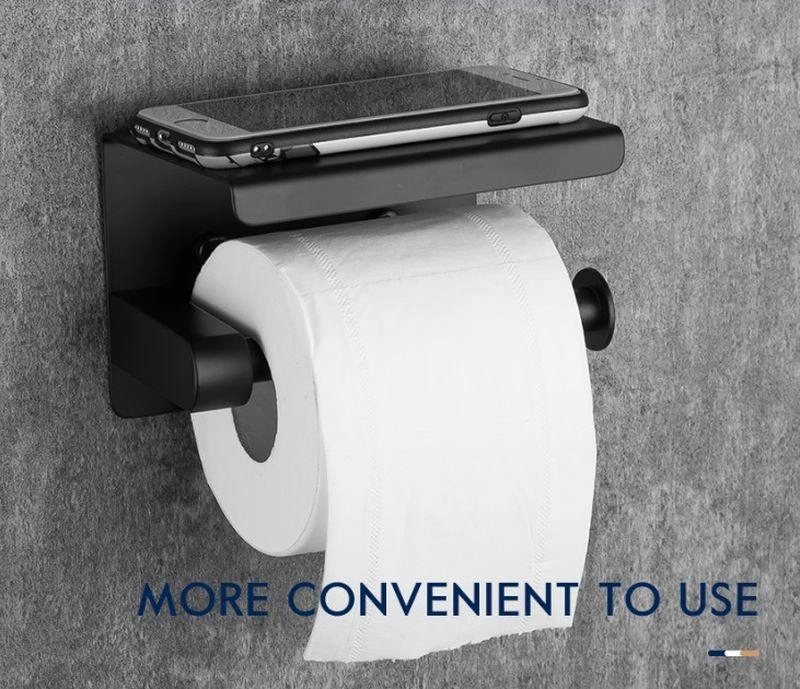 Стильный дизайн держателя туалетной бумаги с полочкой для телефона.