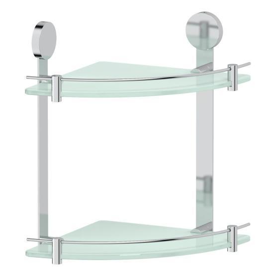 Полка угловая 2-х ярусная 26 cm торговой марки ARTWELLE коллекции Harmonie, артикул: HAR 040 имеет размер в мм: Ширина - 253, Высота - 326, Длина - 253, Вес нетто в граммах: 3391, Расположение: Настенное, Крепление: Саморез, Материал: Латунь; Стекло.