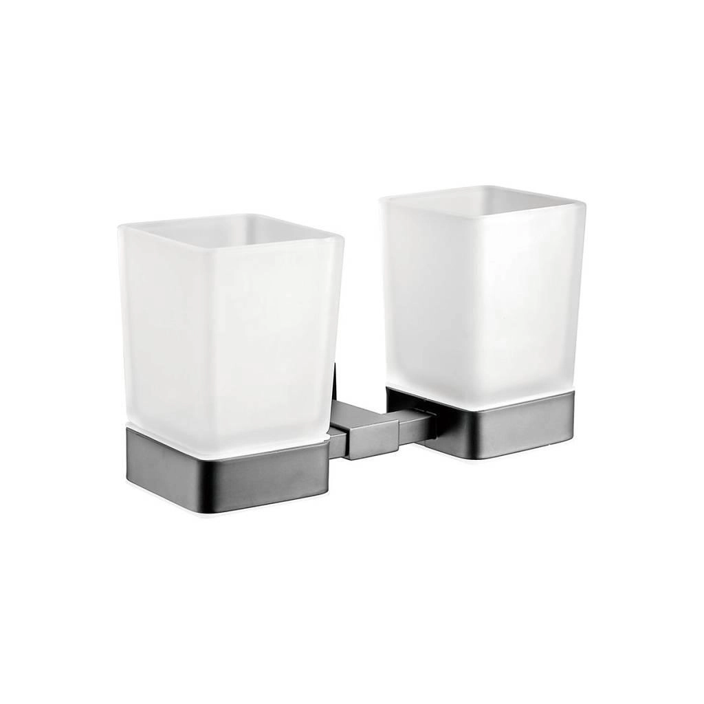 Двойной стакан для ванной комнаты Maretti Torino‑GM TRGM542P43 — элегантное решение для организованного и стильного пространства. Сочетание нержавеющей стали в благородном оттенке «оружейная сталь» и матовых стеклянных стаканов создаёт выразительный визуальный дуэт, придающий интерьеру изысканную сдержанность.