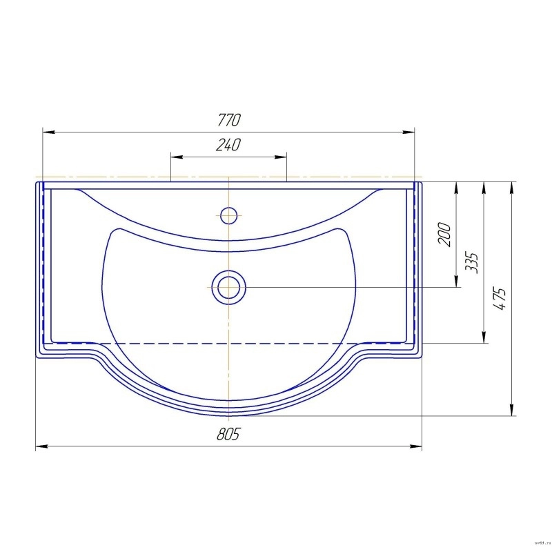 Раковина универсальная с отверстием под перелив, имеет одно отверстие под смеситель, расположение в центре