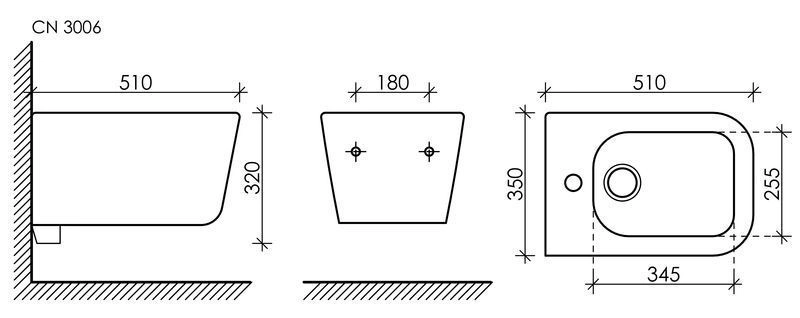 Подвесное биде New Day с керамическим донным клапаном, 1 отверстие под смеситель, с крепежом для полностью скрытого монтажа. В комплекте донный клапан с керамической накладкой