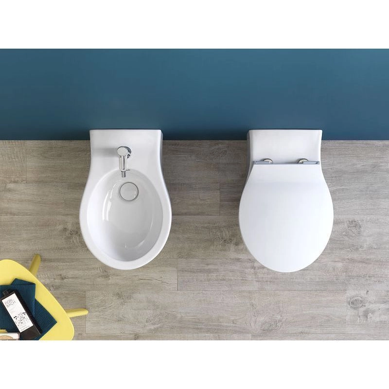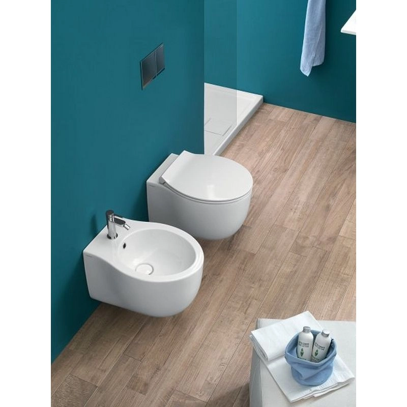 Биде подвесное Hatria LE FIABE Y1A901, цвет белый. Горизонтальный выпуск, крепеж в комплекте. Для монтажа с системами инсталляций.