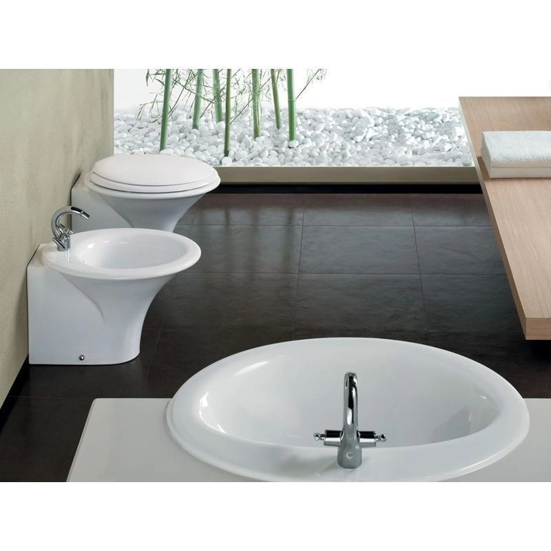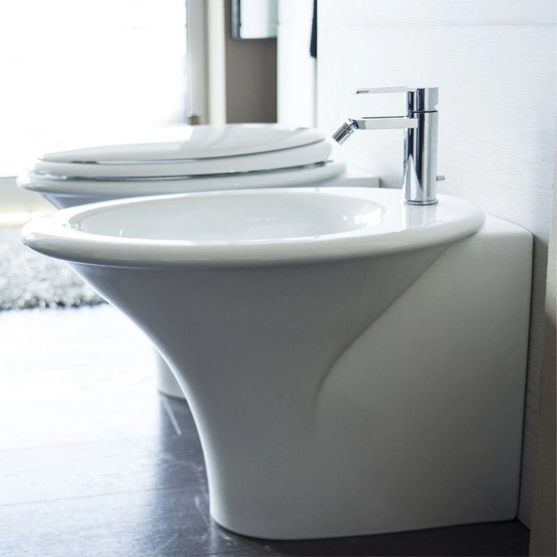 Биде напольное Hatria SCULTURE YR4201, размер 40х60 см, цвет белый, одно отверстие под смеситель готово; с отверстием перелива. Крепление для биде в комплекте.