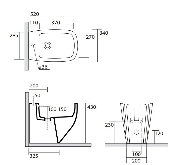 с 1 отверстием под смеситель, 52х34х43см