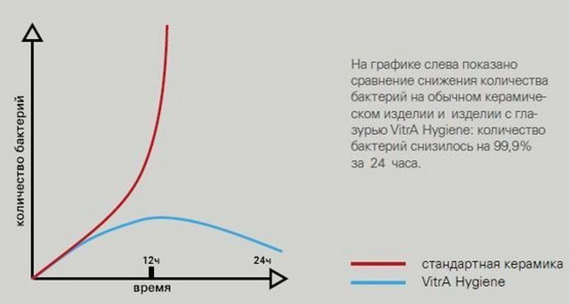 Покрытие - глазурь VitrA Hygiene, уничтожающая 99,9% существующих бактерий и препятствующая их дальнейшему росту