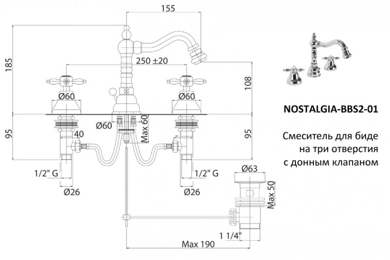 СМЕСИТЕЛЬ ДЛЯ БИДЕ CEZARES NOSTALGIA-BBS2