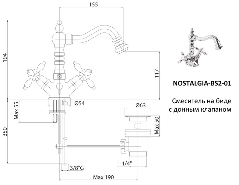 Оснащение: донный клапан, аэратор