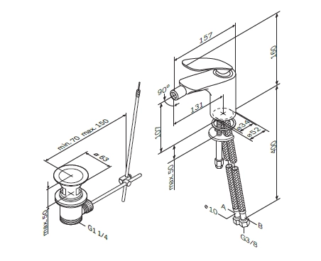 F3083164 Sensation смеситель для биде, хром Излив: 131 мм Установка на одно отверстие Донный клапан Push-Open 1 1/4“ с переливом AM.PM Soft Motion 35 мм керамический картридж Аэратор с шарнирным соединением Гибкая подводка G 3/8“