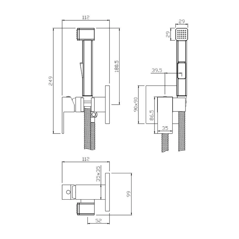 Смеситель комплектуется душевыми аксессуарами: 1-режимная гигиеническая лейка, душевой шланг с защитой от перекручивания.