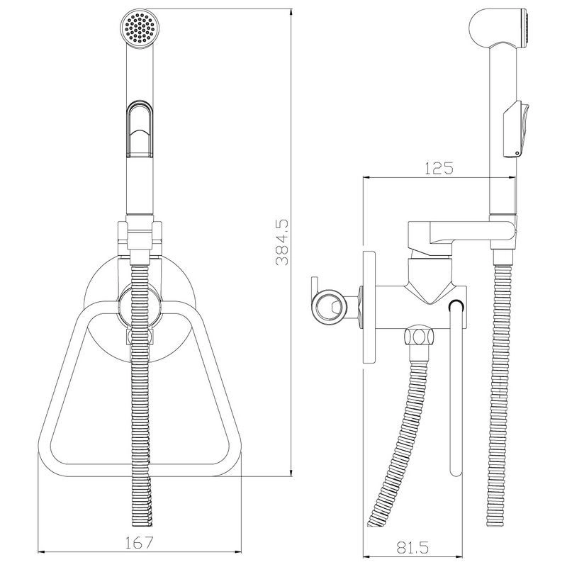 Аксессуары в комплекте (шланг 1,2 м, лейка для биде с нажимным механизмом)