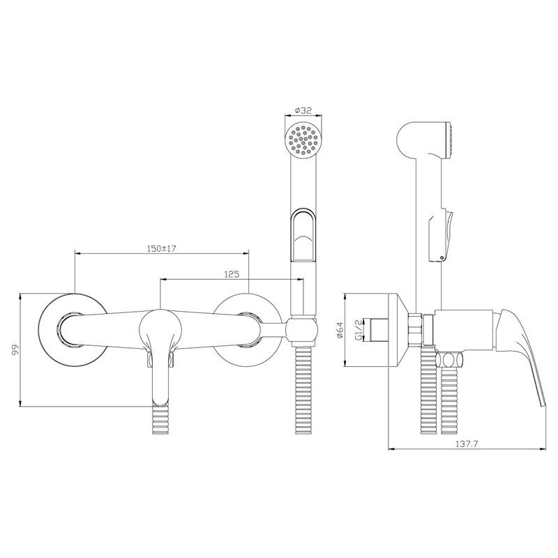 Аксессуары в комплекте (шланг 1,2 м, лейка для биде с нажимным механизмом, с функцией легкой очистки)