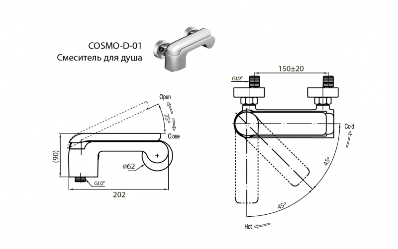 СМЕСИТЕЛЬ ДЛЯ ДУША CEZARES COSMO-D