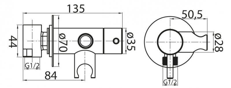 Оснащение: эксцентрик, штуцер с держателем для душа,