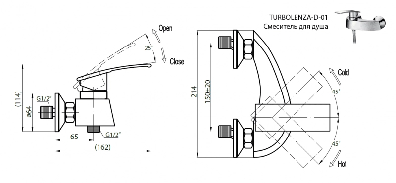 —Смеситель CEZARES TURBOLENZA-D-01 для душа,хром