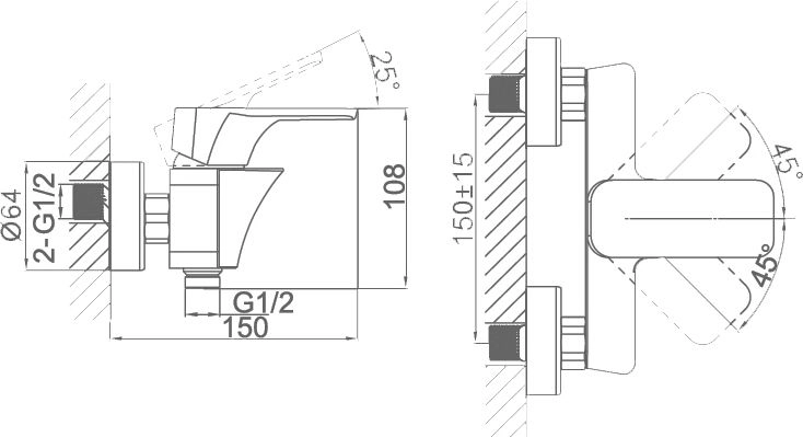 Смеситель D&K DA1433101 для душа хром набор:смеситель и душевой гарнитур,для душа керамический картридж,душевой шланг, душевая лейка, эксцентрики