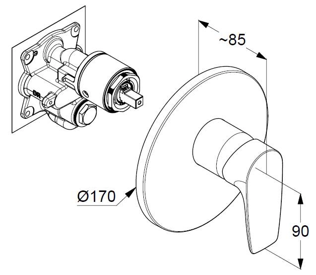 Основные характеристики: - монтаж: скрытый - материал: латунь - керамический картридж с ограничением горячей воды - класс расхода D/C - излив: нет - литой рычаг - для установки требуется скрытая часть смесителя арт. 88011 (отдельная опция) - поверхность: хром