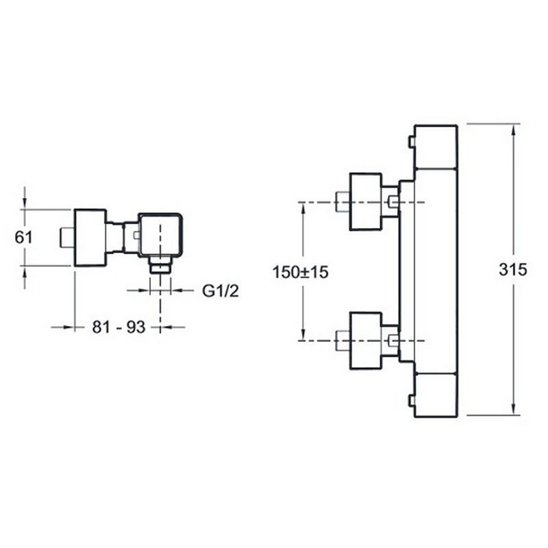 КОЛЛЕКЦИЯ :STRAYT ВЕС :3.1 кг УСТАНОВКА : Крепление к стене РАСХОД : 13 л/мин МЕХАНИЗМ: Термостатический картридж МЕЖОСЕВОЕ РАССТОЯНИЕ: 150 ± 15 мм КРЕПЕЖИ: С настенными крепежами и кольцами ГАРАНТИЯ НА ОТДЕЛКУ: : 10 лет