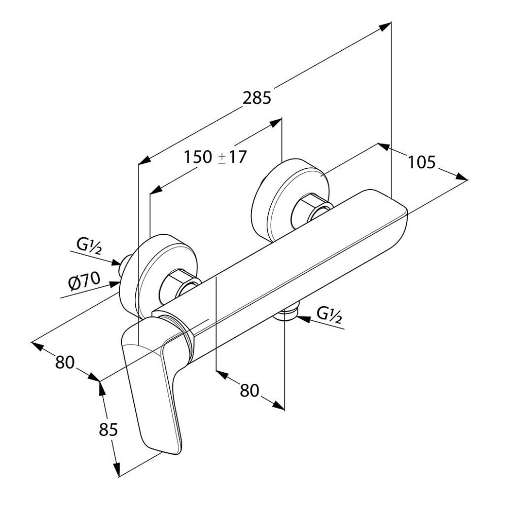 Основные характеристики: - Смеситель душа - Способ монтажа: вертикальный - Излив: нет - Количество монтажных отверстий: 2 - Керамический картридж - Ограничение температуры воды - Материал: латунь - Цвет: хром