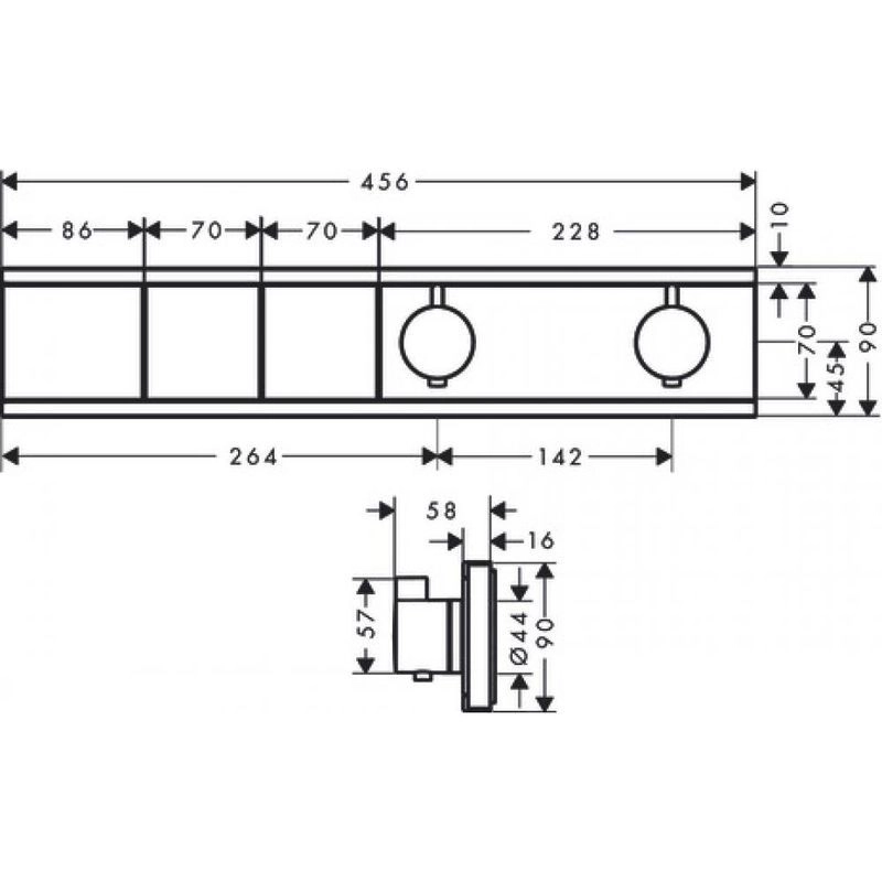 —Смеситель термостат Hansgrohe 15380140 RainSelect для 2х потребителей (внешняя монтажная часть) шлифованная бронза