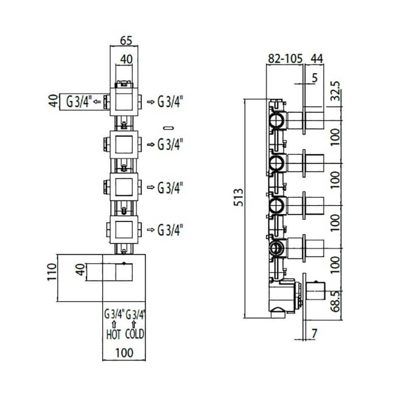 Bossini Cube Z032208.030 Термостат для ванны - внешняя часть (хром). Наружные части термостатического смесителя на 5 ВЫХОДов (внутренний механизм Z030275000). Индивидуальные накладки для горизонтальной или вертикальной установки.