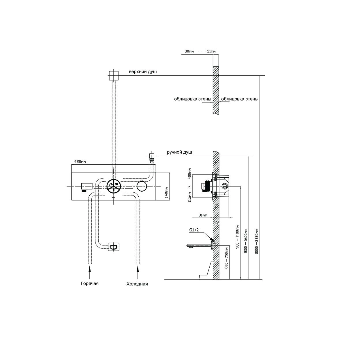 Встраиваемый смеситель Vincea термостат предназначен для 3-х потребителей : верхний душ, ручной душ, излив или любое другое исполнение