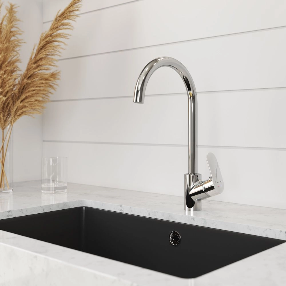 Впервые модный дизайнерский смеситель в доступном сегменте: ультрамодный стиль Dynamic Organic — природные формы в сочетании с четкими линиями, доведенными до совершенства человеком. Максимальный комфорт: плавное вращение поворотного излива в любом направлении обеспечивает непревзойденное удовольствие от использования и удобство в работе на кухне. Эксклюзивная разработка: специально спроектированный для АМ.РМ керамический картридж SoftMotion 35 мм обеспечивает оптимальную регулировку температуры, а также позволяет выдерживать любые перепады давления. Разработан с учетом ваших потребностей и особенностей различных пространств. Высокий излив смесителя Like идеально подойдет для любой раковины поможет вам с легкостью справится с такими задачами, как наполнение больших емкостей