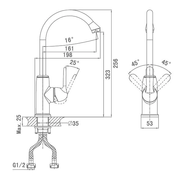 Смеситель D&K DA1342401 для кухни хром ,керамический картридж,система быстрого монтажа, аэратор, гибкая подводка