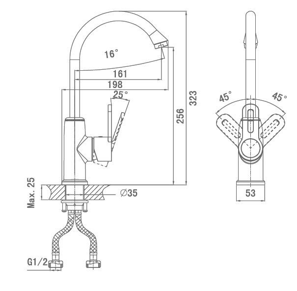 Смеситель D&K DA1352401 для раковины хром керамический картридж,система быстрого монтажа, аэратор, гибкая подводка