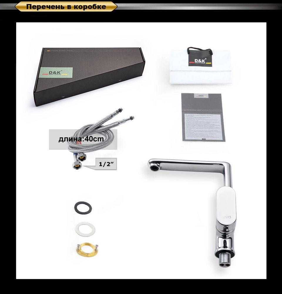 Смеситель D&K DA1312401 для кухни хром керамический картридж,система быстрого монтажа, аэратор, гибкая подводка
