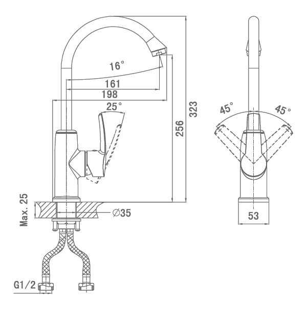 Смеситель D&K DA1362401 для кухни хром керамический картридж,аэратор, гибкая подводка, система быстрого монтажа