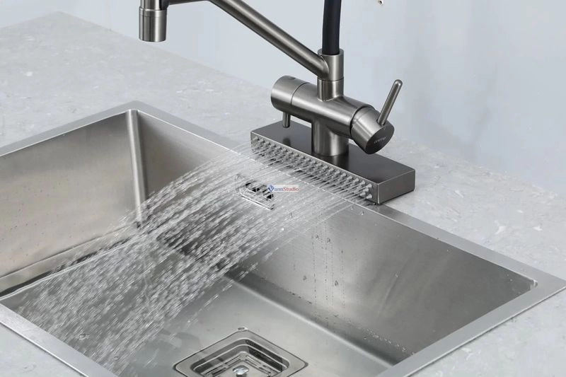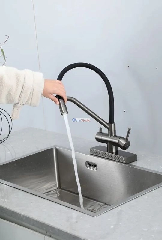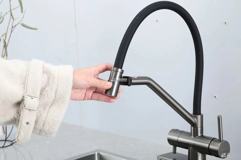 Смеситель для кухни Gappo G4098-9 с водопадом оружейная сталь сочетает в себе современный стиль и инновационные технологии.