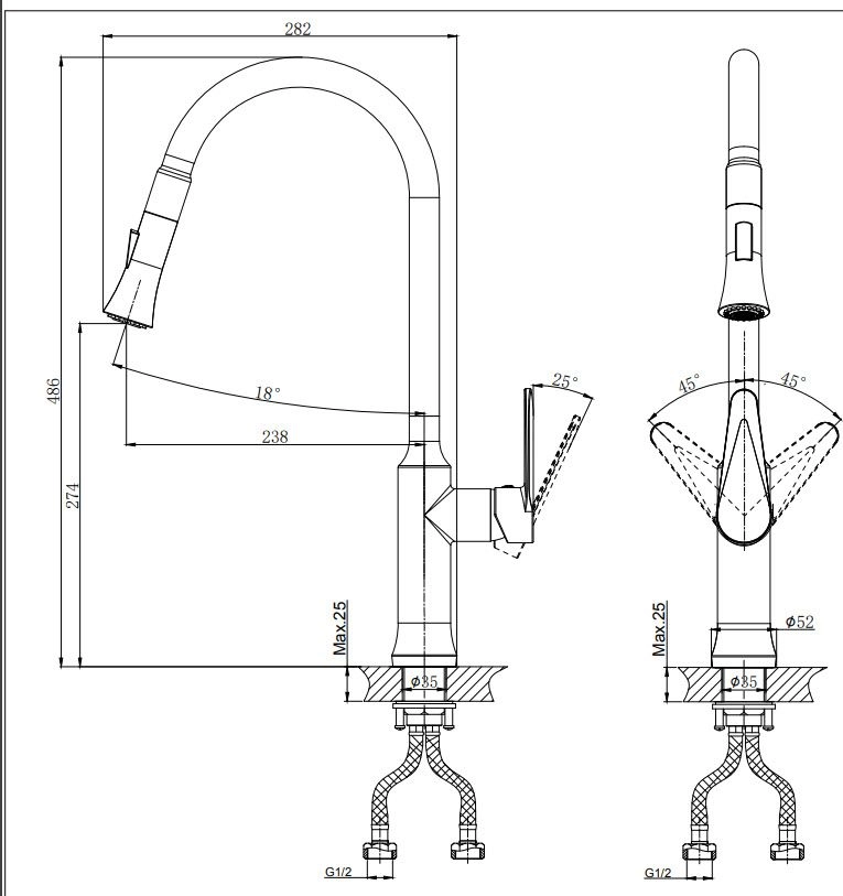 • Гибкая подводка с латунными гайками 45 см -2шт