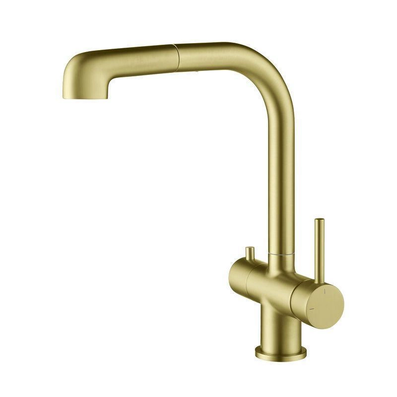 —Смеситель для кухни с подключением фильтра и выдвижной лейкой Timo Saona 2346/17FL золото матовое