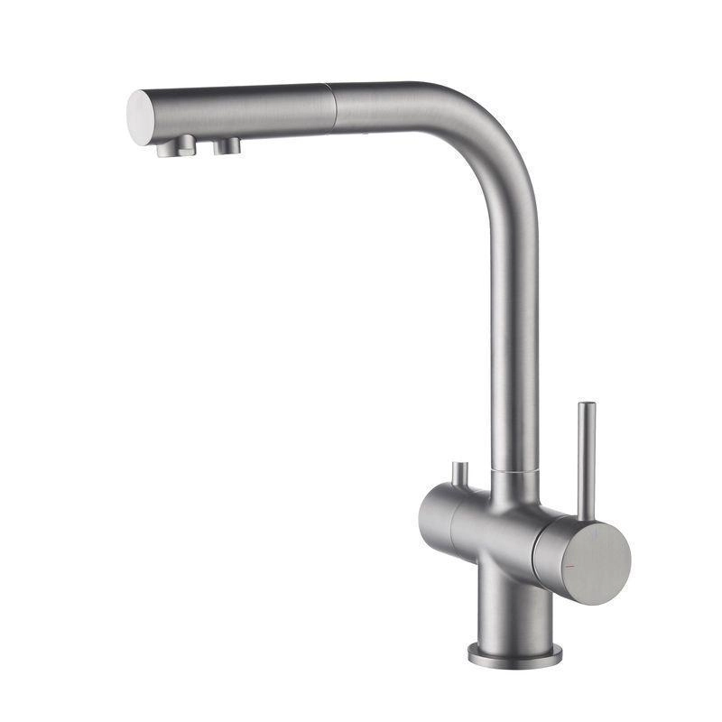 "Черное золото" - неизменно эффектный и привлекающий внимание цвет. Приглушенный мягкий оттенок черного, подчеркнет форму раковины. Смеситель Timo Saona 2356 с выдвижной лейкой и системой подключения фильтрованной воды относится к премиальному сегменту, предназначен для монтажа на кухонную мойку или столешницу. Высокий излив подходит для моек с двумя чашами, а также позволяет справляться с мытьем габаритной посуды. Удобное (вертикальное) расположение рычага смесителя в крайнем положении "холодный старт", позволяет не задевать ручкой за стеновые панели, фартук, предметы, которые находятся за смесителем. Картридж с функцией "холодный старт" работает в диапозоне 90 градусов, рычаг установленный в исходное положение (вертикально) при открытии подает только холодную воду, а не 50% холодной воды плюс 50% горячей, позволяя экономить до 30% расход горячей воды. Для подачи горячей воды необходимо повернуть рычаг на себя. Выдвижная лейка с прочным шлангом длинной 400мм облегчает мытье раковины, крупной посуды, позволяет набрать воду в емкость, стоящую рядом с мойкой. Встроенный магнитный держать позволяет легко вернуть лейку в исходное положение. В нижней части смесителя установлена трубка с адаптером для соединения с трубкой фильтра. Подача фильтрованной воды осуществляется поворотом ручки дивертора расположенной слева на корпусе смесителя. Сложностей монтажа не возникает при установке смесителя опытным сантехником. Внимательно изучите инструкцию по монтажу и эксплуатации. Цвет "черное золото" не капризен в уходе, на нем менее заметны загрязнения и мелкие царапины.