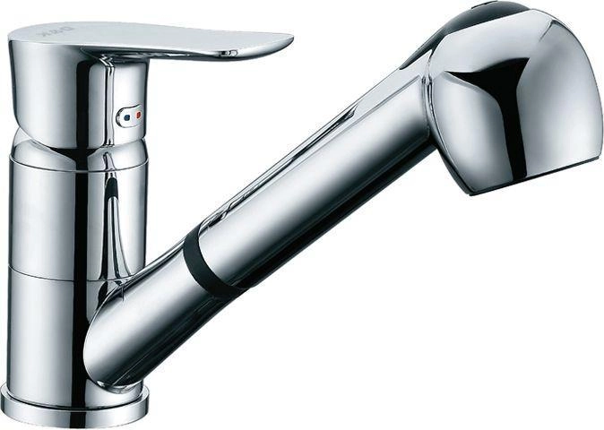 Смеситель D&K DA1272501 для кухни с вытяжным душем хром керамический картридж,система быстрого монтажа, аэратор, гибкая подводка
