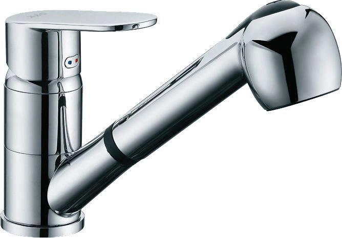 Смеситель D&K DA1312501 для кухни с вытяжным душем хром керамический картридж,система быстрого монтажа, аэратор, гибкая подводка
